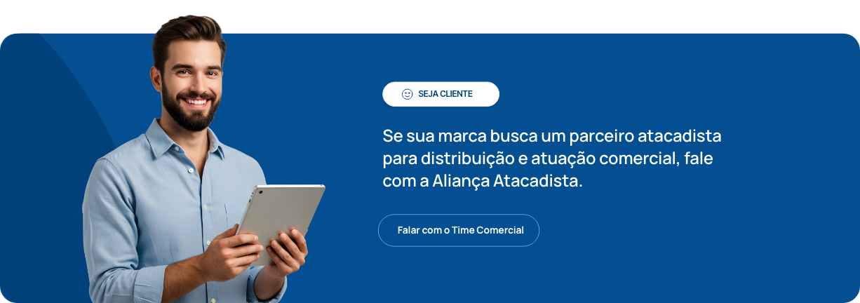 As parcerias do Aliança Atacadista são voltadas a indústrias e marcas que desejam expandir sua atuação no mercado, contando com um distribuidor confiável, organizado e com experiência no setor atacadista.